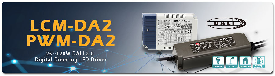 Para la solución de atenuación interior DALI, MEAN WELL mejoró las funciones del producto y lanzó productos que cumplen con las regulaciones DALI 2.0, incluidas las series LCM-DA2 y PWM-DA2.