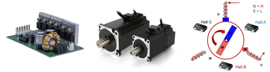 Los motores de corriente continua sin escobillas (BLDC) se utilizan ampliamente en aplicaciones industriales debido a su alta eficiencia y confiabilidad. Los motores BLDC generalmente constan de un rotor, un estator y tres sensores Hall, que desempeñan un papel vital para garantizar un control preciso y eficiente del motor. Estos pequeños dispositivos, ubicados cerca de los imanes giratorios en el rotor, detectan la posición del rotor y envían señales al sistema de control del motor. El módulo VFD de MEAN WELL está diseñado para poder comunicarse con estos sensores Hall para determinar qué bobina del estator se debe energizar a continuación, lo que garantiza un funcionamiento suave y eficiente. Además, gracias a la excepcional compatibilidad y flexibilidad de nuestro VFD, garantiza una integración perfecta para la regulación de velocidad, el control de dirección y las operaciones de arranque/parada. Los ejemplos de aplicación incluyen algunos motores de cinta transportadora en fabricantes que requieren movimiento hacia adelante, movimiento hacia atrás, movimiento a velocidad precisa y frenado repentino cuando sea necesario.
