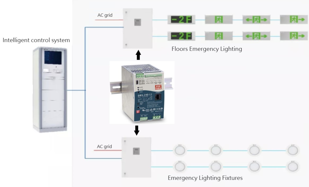 Además de ser adecuado para sistemas de control de alarmas contra incendios, la serie DRS puede proporcionar alimentación para sistemas de iluminación de emergencia, asegurando la iluminación necesaria dentro de los edificios en situaciones de emergencia.